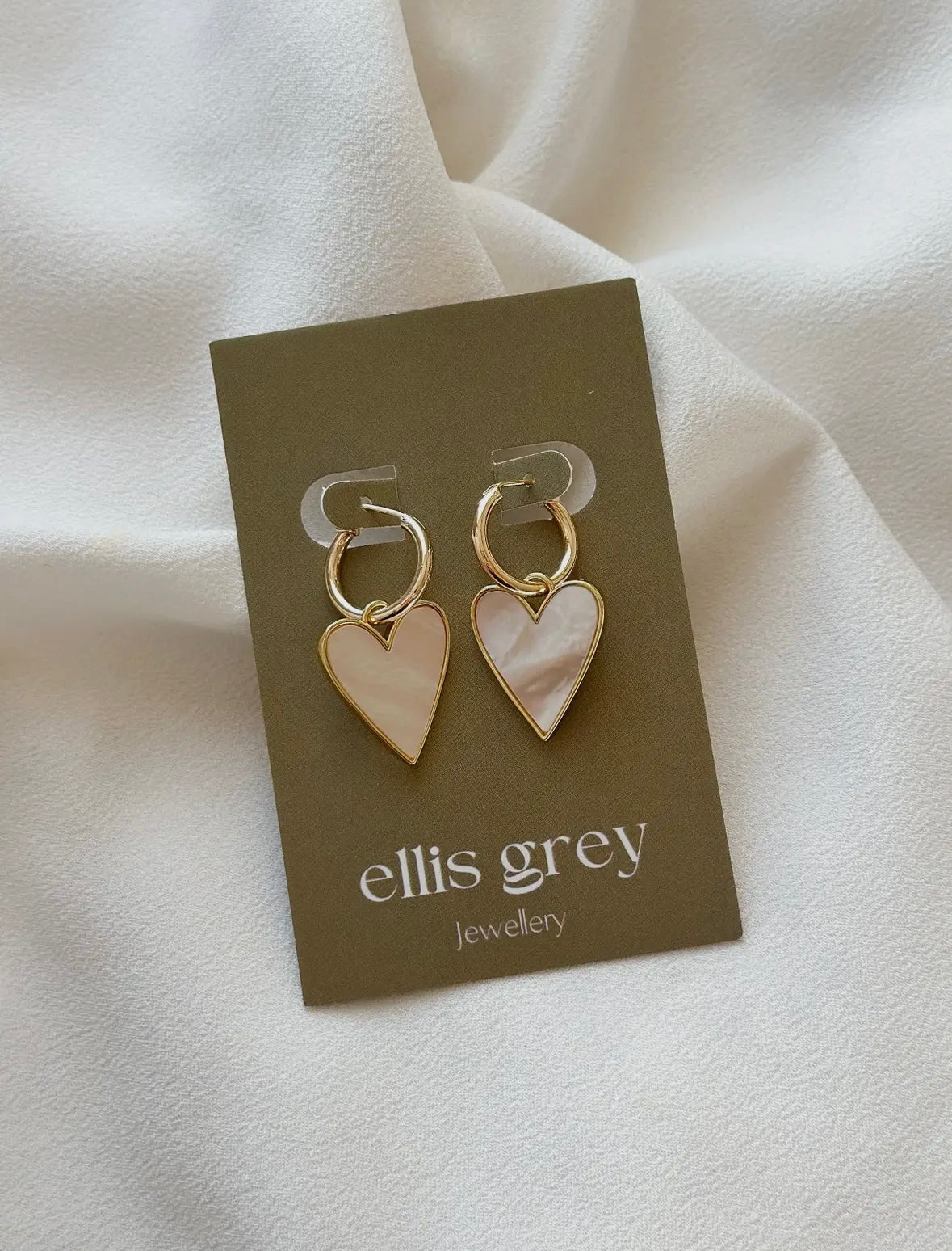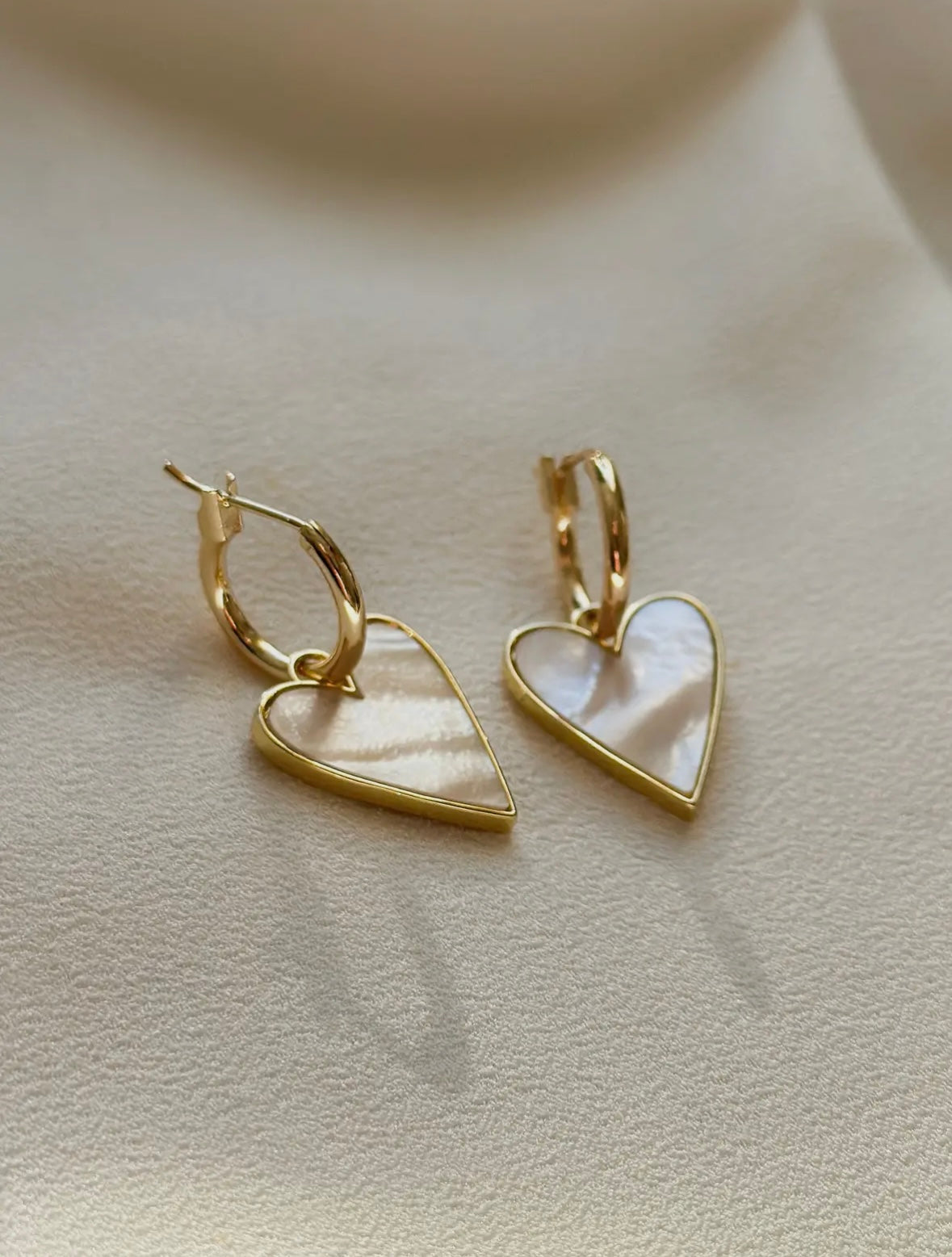 18k Gold Mother of Pearl Heart Hoop Earrings