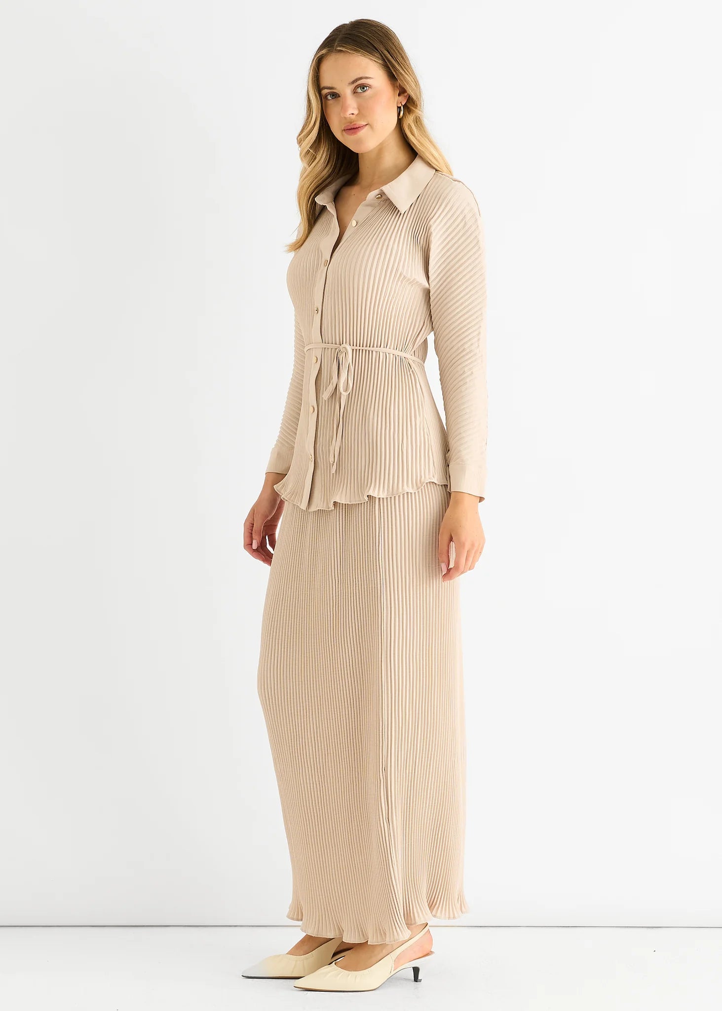 Embrace effortless style with the Beige Plisse Elasticated Waist Maxi Skirt. Its soft plisse fabric and elasticated waist offer all-day comfort and a flattering fit. Perfect for casual outings or bold, relaxed looks, this skirt moves gracefully with you while adding a touch of texture and flow to your wardrobe.