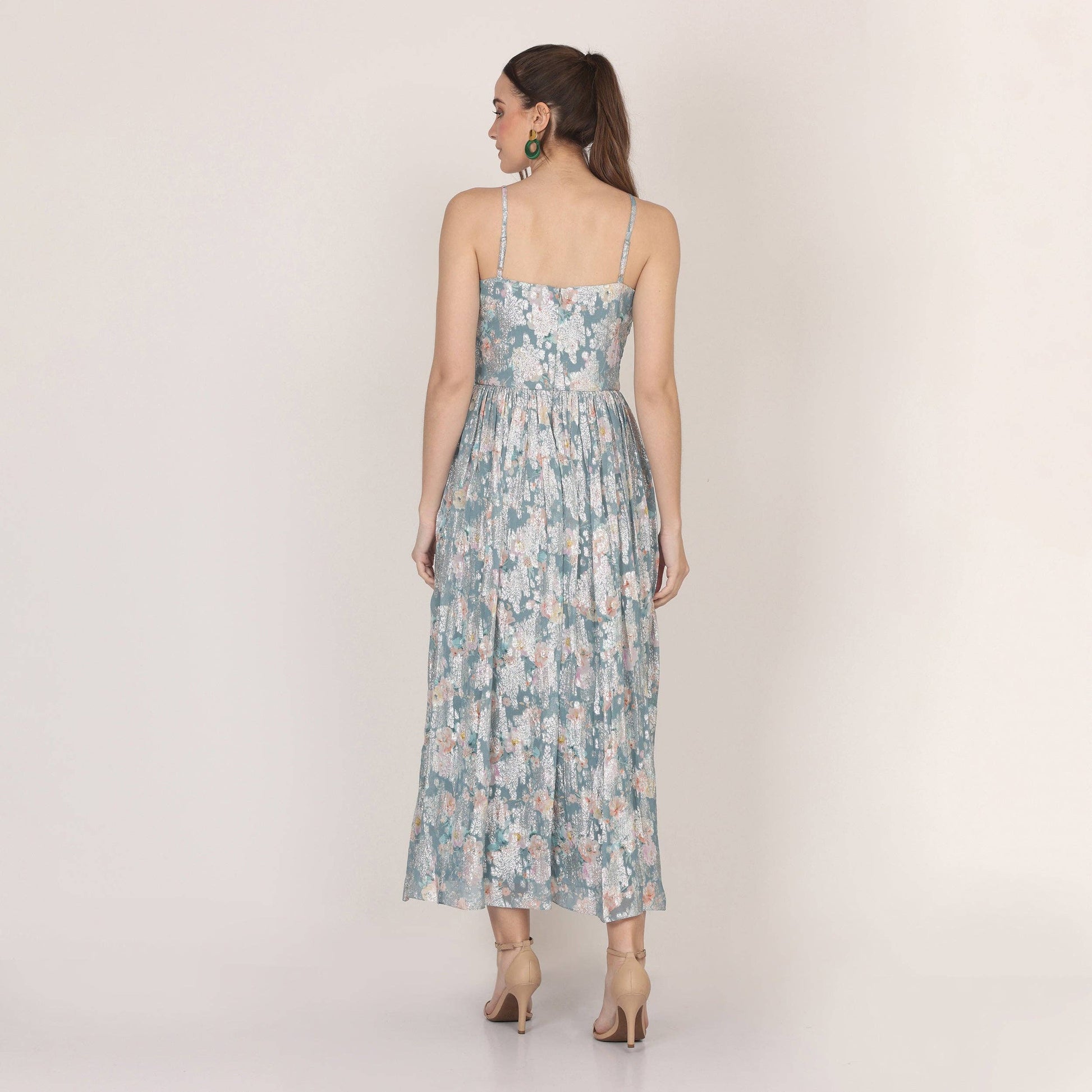 Nelex Metallic Printed Midi Dress in Blue